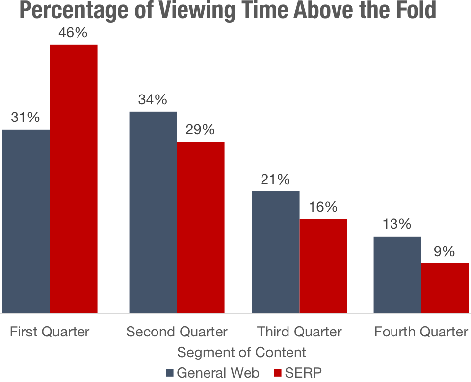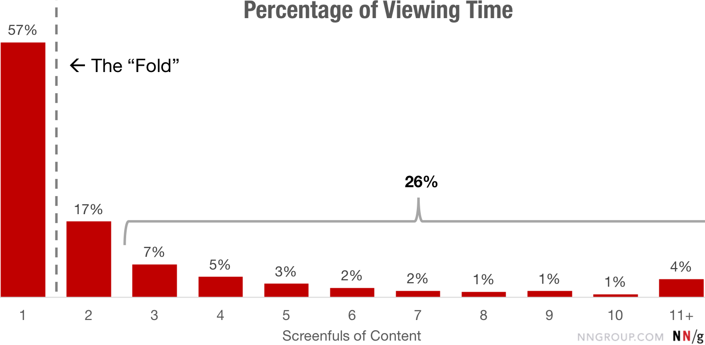В 2010 году 4/5 времени просмотра отводилось на страницу до скролла. Сейчас только 57%, что совершенно закономерно в связи с повсеместным внедрением длинных страниц.