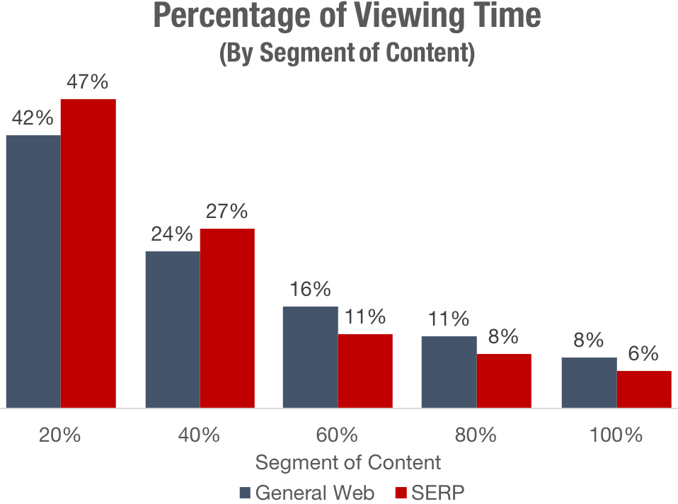 Выяснилось, что на общих сайтах более 42% времени просмотра приходилось на первые 20% страницы и более 65% времени было проведено на первых 40% страницы.
