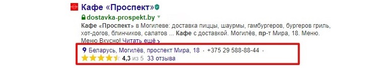 Важны и ответы на отзывы (пользователи получают уведомление), так вы можете повысить звездный рейтинг, который влияет на «привлекательность» карточки в локальной выдачи.