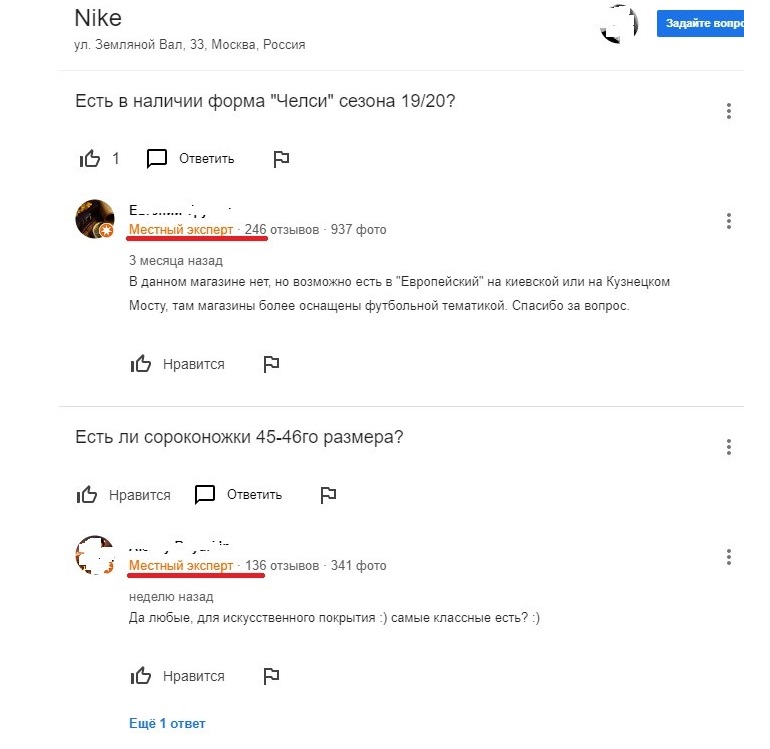 Уделите внимание полезному инструменту «Вопросы и ответы»: прямо на странице GMB пользователи спрашивают у представителей компании об услугах, товарах в наличии и так далее. Отвечать могут и другие пользователи, однако в этом случае никто не гарантирует, что информация достоверна.