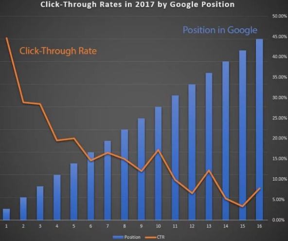 Компания Ignite Visibility провела исследования на тему определения показателей кликабельности для отдельных позиций в органической выдаче Google в 2017 году.