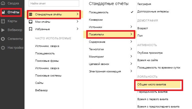 Как в него попасть: Отчеты — Стандартные отчеты — Посетители — Лояльность.