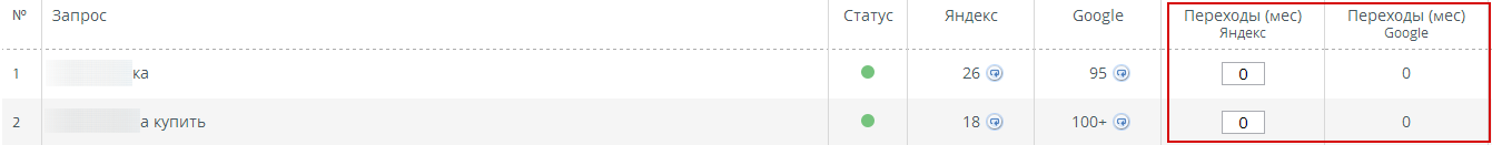 Если вы назначили для проекта ручной тип управления, то удостоверьтесь, что вы выставили кол-во переходов в месяц по запросам. Для этого перейдите проект и в столбцах “Переходы Яндекс”/”Переходы Google” поставьте необходимое кол-во переходов по каждому запросу.